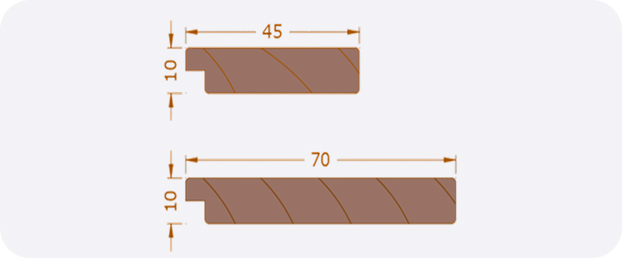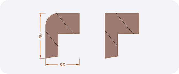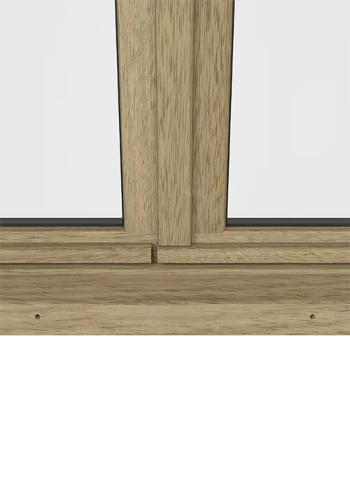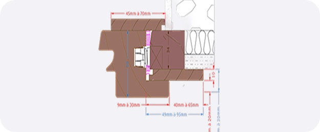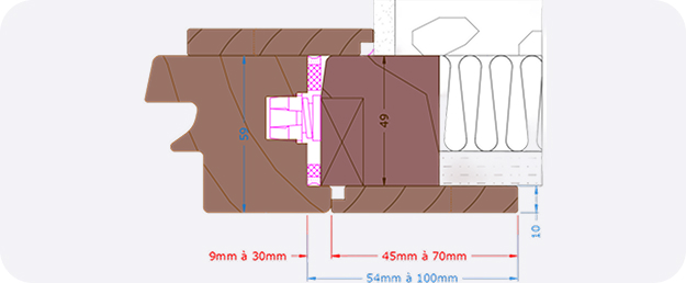 Pièce d‘appui monobloc de 118 mm de base (option monobloc 88 ou 138 mm et 158, 178 ou 198 mm avec nez d’appui) Fourrure d’isolation pour doublage de 80, 100, 120, 140, 160, 180 et 200 mmAile de recouvrement 9 mm monobloc de base (neuf, pose en applique et dormant droit pour pose en tunnel) Aile de 14, 20 ou 30 mm en option et différents habillages pour rénovation