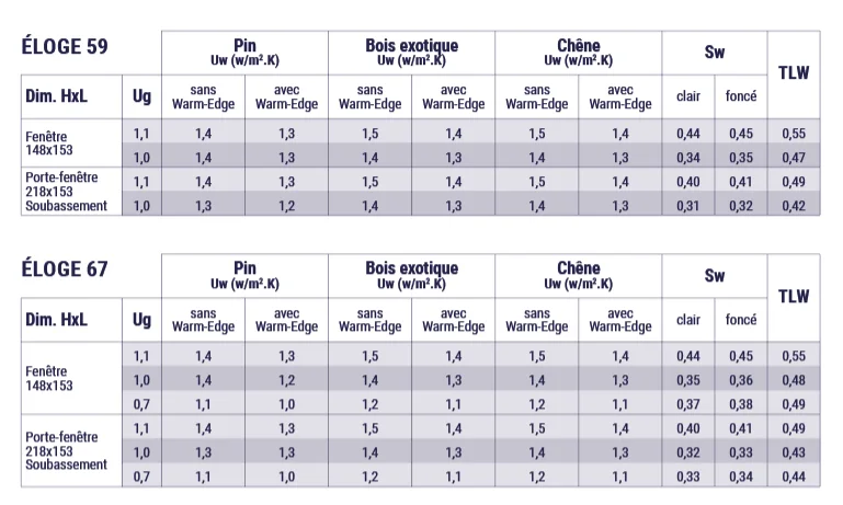(option triple vitrage sur 67 mm). Warm-edge en option.